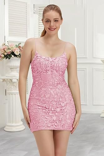 Lace Homecoming Dresses for Teens Tight Short Prom Dress Spaghetti Straps Cocktail Party Dresses