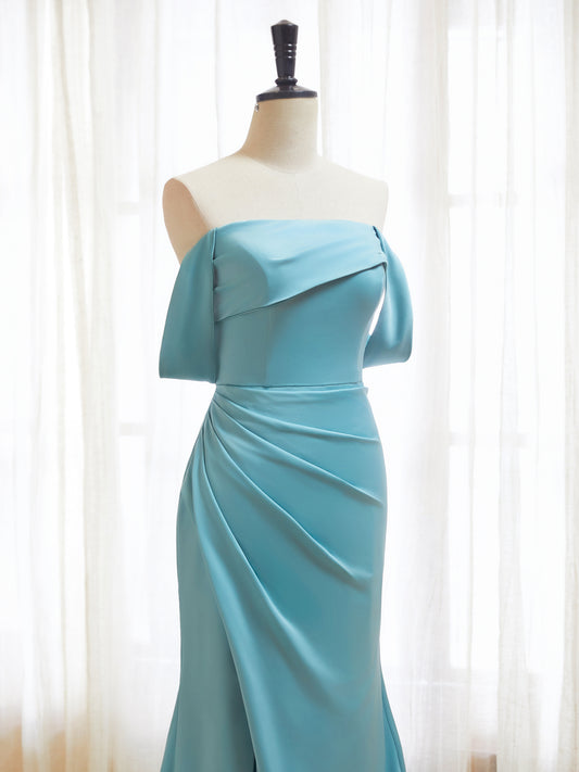 Off The Shoulder Satin Bridesmaid Dresses for Women Long Mermaid Pleated Prom Dresses with Slit