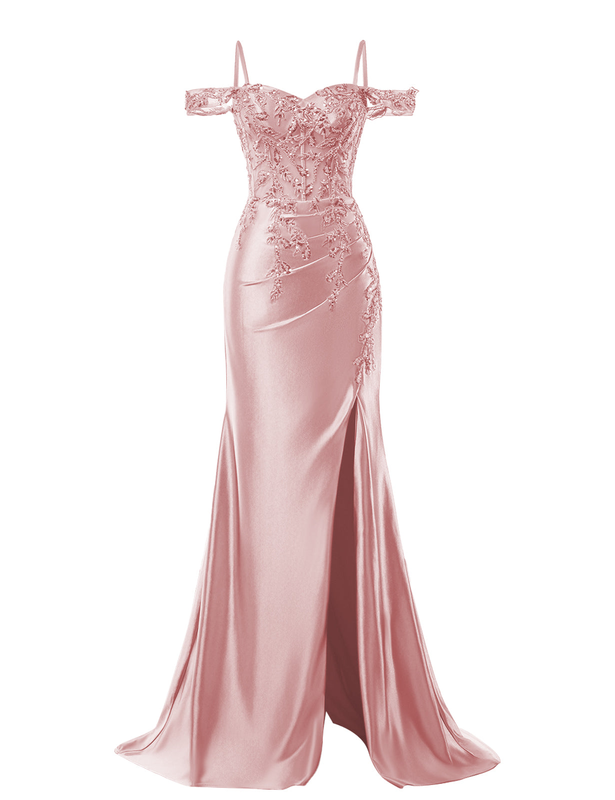 【Features】Satin prom dresses 2025 long mermaid off shoulder prom dress with slit, lace applique beaded bodice, lace satin hem, side split, off shoulder formal evening gown, spaghetti straps, cold shoulder, corset top, mermaid style, tight/bodycon, zipper back,floor length.
